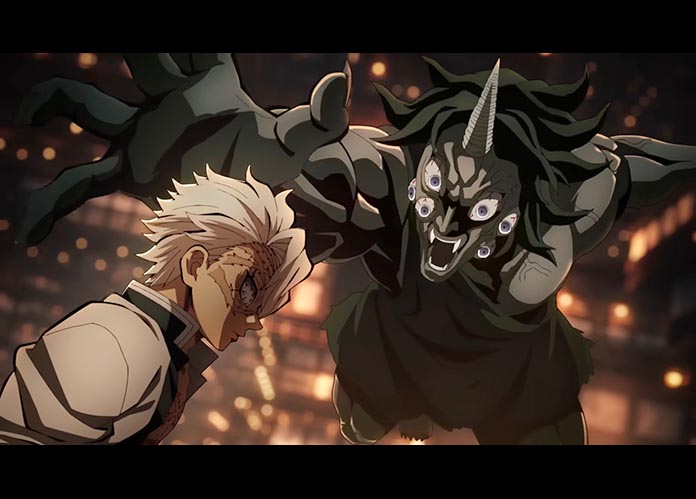 富岡義勇 & 胡蝶忍(殘留意志) vs. 猗窩座:覺醒的猗窩座與義勇的悲壯對決,胡蝶忍的毒成為關鍵。